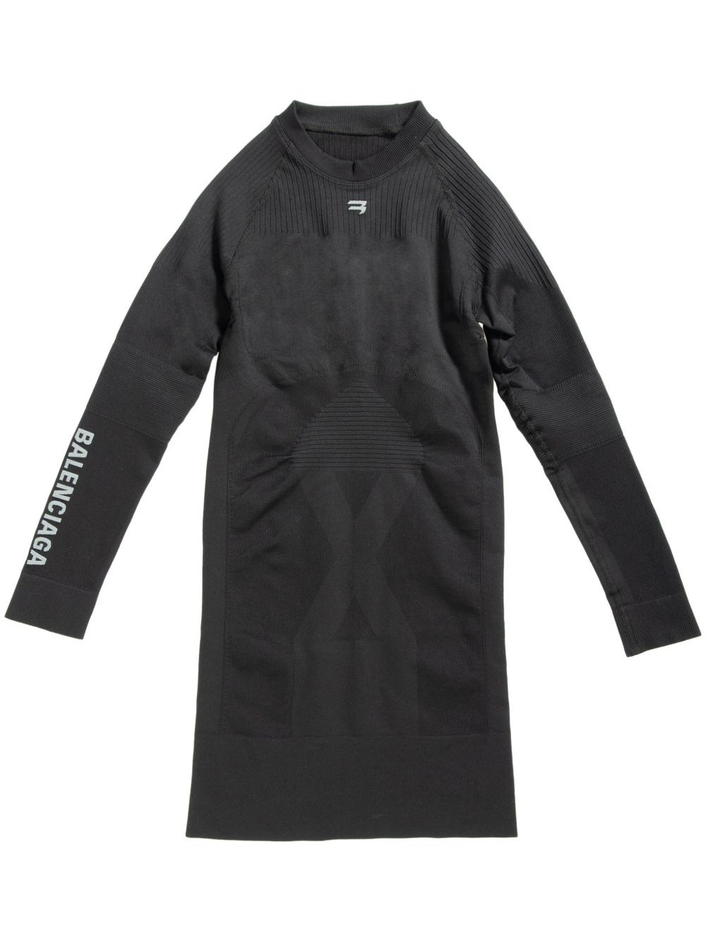 long-sleeved ribbed minidress Highlights - Black - Stretch-design - Ribbed knit - Round neck - Logo print at the sleeve - Long sleeves - Pencil silhouette - Straight hem - Above-knee length Made in Italy Composition Polyamide 95%, Elastane 5% SIZE & FIT Measurement SLEEVE LENGTH 16.49 in(41.9 cm) LENGTH 25.51 in(64.8 cm) WAIST 22 in(55.9 cm) BUST 22 in(55.9 cm)