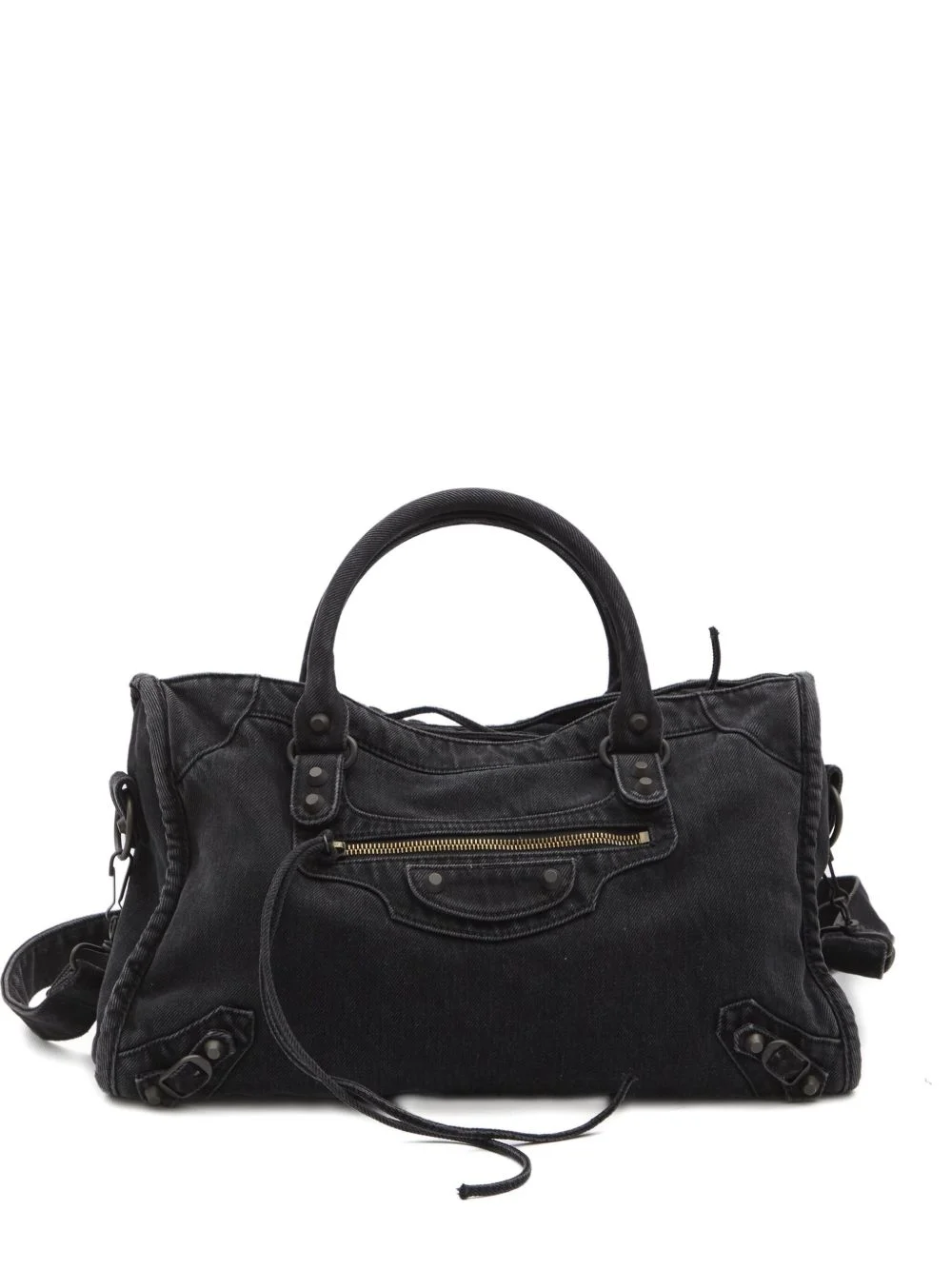 medium Le City tote bag Highlights - Black - Washed denim - Two top handles - Adjustable and removable strap - Front zip pocket - Zip closure Made in Italy Composition Outer: Brass 100%, Cotton 80%, Polyester 19%, Nylon 1% Lining: Cotton 100% SIZE & FIT Measurement DEPTH 5.31 in(13.5 cm) HANDLE 6.1 in(15.5 cm) HEIGHT 9.44 in(24 cm) WIDTH 15.15 in(38.5 cm)