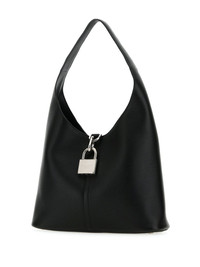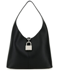 medium Locker leather shoulder bag Crafted in Italy from grained calf leather, Balenciaga's Locker tote bag is so-named because of the logo-engraved, silver-tone padlock adorning its front, lending a hard-edged metallic accent. It is held on a long, flat top handle, allowing hand or shoulder carrying. Highlights - Black - Calf leather - Grained texture - Padlock detail - Silver-tone hardware - Single shoulder strap - Main compartment Made in Italy Composition Outer: CALFSKIN 100% SIZE & FIT Measurement DEPTH 4.33 in(11 cm) HANDLE 11.41 in(29 cm) HEIGHT 10.23 in(26 cm) WIDTH 14.96 in(38 cm)