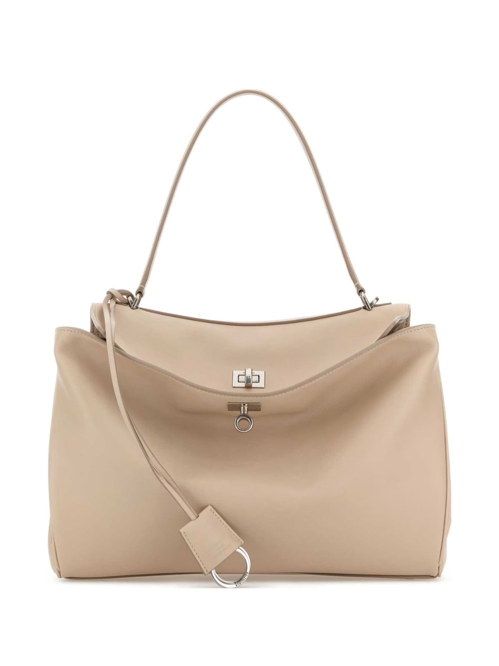 medium Rodeo tote bag Highlights - Almond beige - Single flat top handle - Twist-lock closure - Hanging key fob - Silver-tone hardware Made in Italy Composition Outer: Calf Leather 100% SIZE & FIT Measurement DEPTH 4.33 in(11 cm) HEIGHT 8.66 in(22 cm) WIDTH 13.38 in(34 cm)