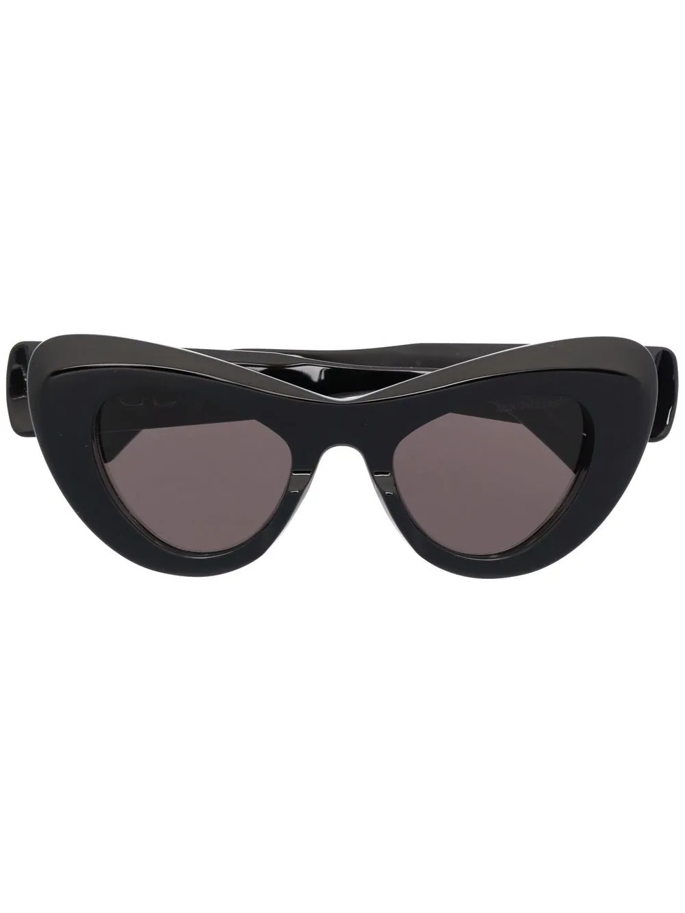 Mega cat-eye sunglasses black inside-out effect cat-eye frame grey tinted lenses logo print at the arm straight arms curved tips These glasses come with a protective case. All glasses from FARFETCH are sold as non-prescription frames. Made in Italy Composition Acetate 100%