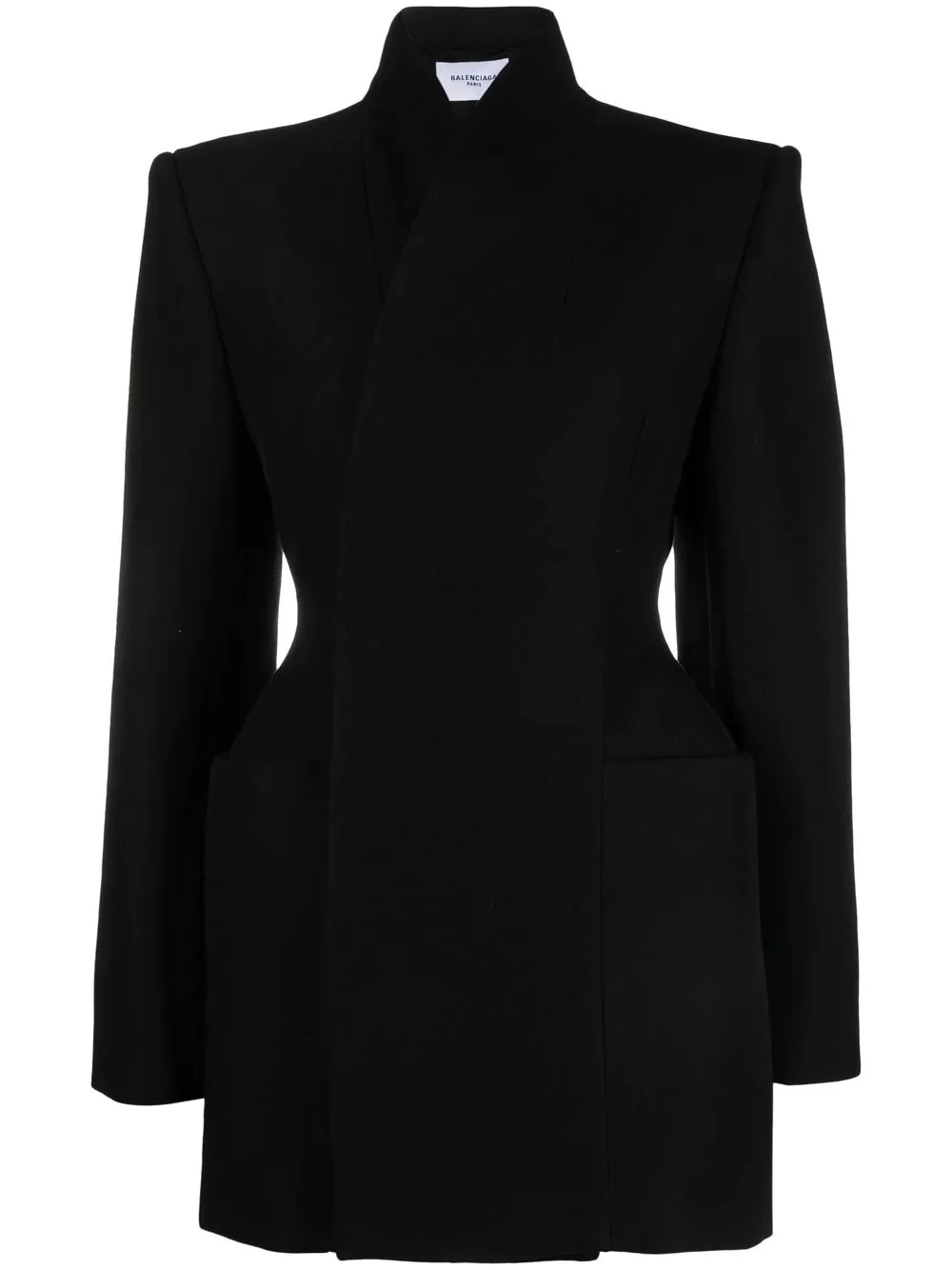 Minimal Hourglass jacket Crafted as one of Balenciaga's signature styles, one introduced by Cristobal Balenciaga himself, this minimal Hourglass jacket is a mainstay for the fashion house. Highlights - Black - Cotton-wool blend - Stand-up collar - Concealed front fastening - Shoulder pads - Long sleeves Made in Italy Composition Lining: Cotton 100% Outer: Wool 100% SIZE & FIT Measurement SLEEVE LENGTH 25.59 in(65 cm) LENGTH 31.49 in(80 cm) Washing instructions Dry Clean Only