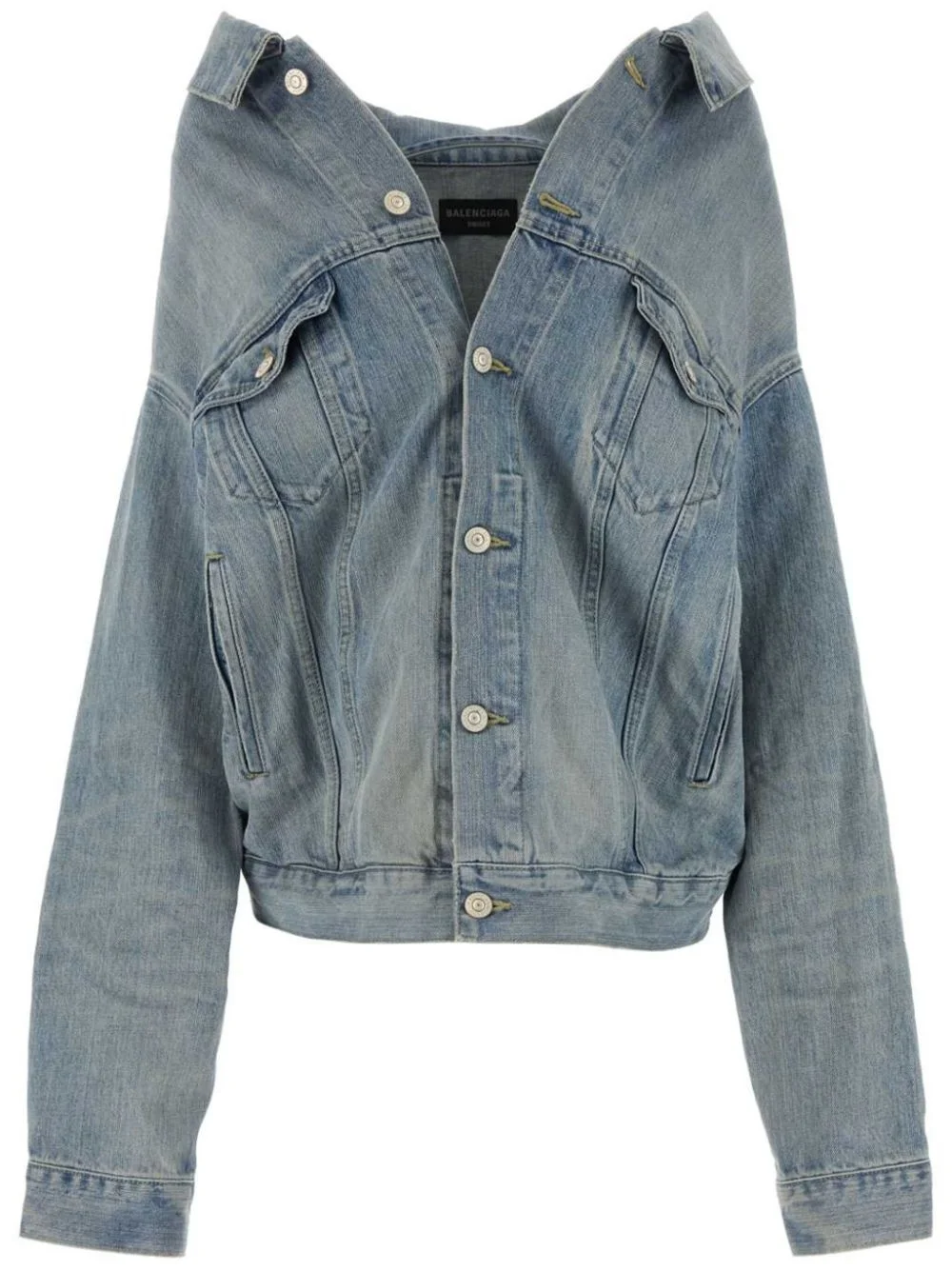 drop-shoulder denim jacket Highlights - Blue - Cotton - Washed denim - Classic collar - Front button fastening - Drop shoulder - Long sleeves with buttoned cuffs - Two button-fastening chest pockets - Two side welt pockets - Straight hem - When buying this unisex item, keep in mind that it is graded in standard men's sizing. Imported Composition Outer: Cotton 100% Lining: Cotton 100% SIZE & FIT Measurement SLEEVE LENGTH 20.07 in(51 cm) LENGTH 22.44 in(57 cm) WAIST 48.81 in(124 cm) FittingInformation This unisex piece is designed for an oversized fit whether you usually select women's or men's sizes The adjustable tabs allow for fitted preferences Sturdy and hard-wearing, this denim piece offers no stretch
