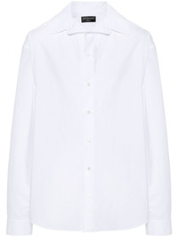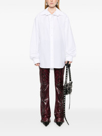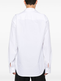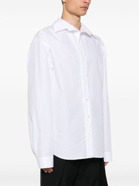kick-collar shirt Balenciaga injects signature avant-garde spirit into their recreation of a classic white shirt. The Paris based fashion house intentionally cut this cotton-blend garment to realise a large shape. Highlights - White - Cotton - Classic collar - Drop shoulder - Long sleeves - Buttoned cuffs - Curved hem - Front button fastening - When buying this unisex item, keep in mind that it is graded in standard men's sizing. Made in Italy Composition Cotton 100% SIZE & FIT Model measurements Height 5 ft 10 in(1.77 m) Bust/Chest 33.85 in(86 cm) Hips 37 in(94 cm) Waist 26.37 in(67 cm) FittingInformation This piece is unisex – if you usually select men's sizing expect a loose fit throughout; if you usually select women's sizes, expect an oversized fit Constructed with additional length on the sleeve Made from a midweight non-stretch fabric Washing instructions Dry Clean Only