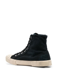 Paris high-top sneakers Blurring the line of time, Balenciaga brings these Paris high-tops to its AW22 collection. Its frayed finish is combined with a distressed effect on the sole, never forgetting about the brand’s name, stamped right on the front. Highlights - Black/white - Cotton - Ankle-length - Distressed finish - Frayed detailing - Logo stamp to the front - Logo tag - Front lace-up fastening - Round toe - Branded insole - Flat rubber sole Imported Composition Outer: Cotton 100% Lining: Cotton 100% Sole: Rubber 100% SIZE & FIT Measurement HEIGHT 4.52 in(11.5 cm) Sole height 1.18 in(3 cm)