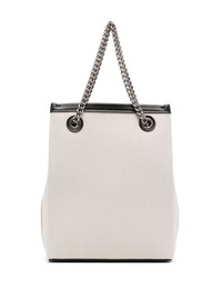 Duty Free canvas phone bag Balenciaga's crossbody bag is printed with the signature Balenciaga Paris logo on the front. It can be held by the two chain-link handles or worn over the shoulder thanks to the detachable shoulder strap. Highlights - Light beige/black - Cotton blend - Canvas - Leather trim - Logo print to the front - Logo-engraved eyelet detailing - Open top - Two leather and chain-link top handles - Adjustable detachable shoulder strap - Main compartment - Debossed internal logo - Internal zip-fastening pocket - Full lining - Silver-tone hardware - This piece comes complete with a protective dust bag. Made in Italy Composition Outer: Cotton 80%, CALFSKIN 20% SIZE & FIT Measurement DEPTH 2.75 in(7 cm) HEIGHT 8.07 in(20.5 cm) WIDTH 6.29 in(16 cm)