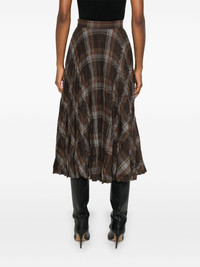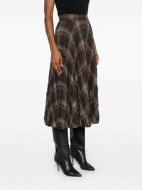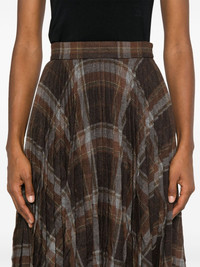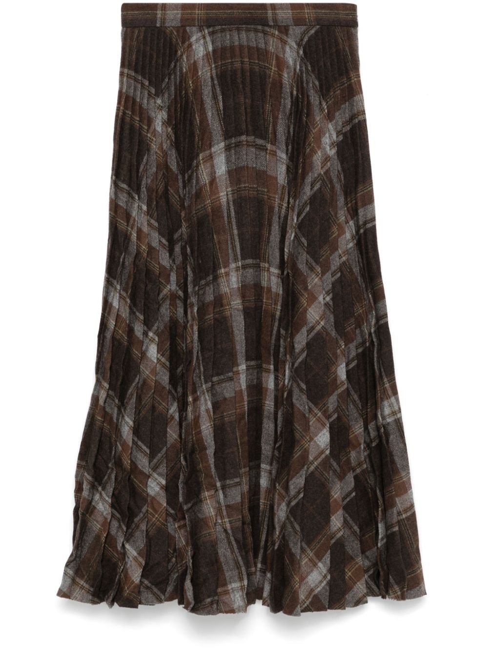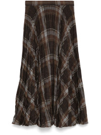 pleated crease-effect midi skirt Highlights - Brown/grey/yellow - Wool blend - Interlock twill weave - Fully pleated - Crease effect - Concealed side hook and zip fastening - Check pattern - High-waisted - Unlined - Raw-cut straight hem - Mid-length Made in Italy Composition Wool 55%, Polyester 42%, Other fibres 3% SIZE & FIT Model measurements Height 5 ft 11 in(1.8 m) Bust/Chest 32.67 in(83 cm) Hips 35.82 in(91 cm) Waist 25.98 in(66 cm) Measurement HIPS 35.98 in(91.4 cm) LENGTH 33.5 in(85.1 cm) WAIST 27 in(68.6 cm) FittingInformation This midi-length skirt is intended to be worn high on the waist Made from a midweight non-stretch fabric