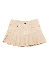 pleated denim mini skirt Highlights - Beige Imported Composition Outer: Cotton 100% Lining: Cotton 100% SIZE & FIT Model measurements Height 5 ft 10 in(1.78 m) Bust/Chest 33.46 in(85 cm) Hips 36.22 in(92 cm) Waist 23.22 in(59 cm) Washing instructions Machine Wash