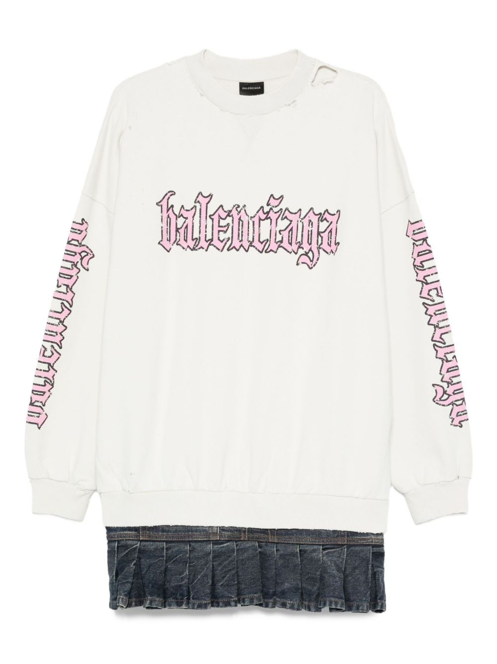 pleated-hem logo dress Highlights - Off-white - Distressed hem - Pleated denim hem - Long sleeves - Logo print - Sleeve logo print Imported Composition Cotton 100% SIZE & FIT Model measurements Height 5 ft 9 in(1.75 m) Bust/Chest 32.67 in(83 cm) Hips 36.22 in(92 cm) Waist 24.8 in(63 cm) Washing instructions Hand Wash