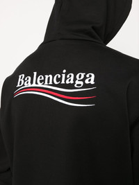 Political Campaign hoodie Inspired by Bernie Sanders' 2016 Presidential Election campaign, this hoodie bears a logo on the chest in the style of the campaign's font. Its design is crafted from cotton, in a black hue, and is completed by a fixed hoodie. Highlights - Black - Cotton - Logo print at the chest - Logo print to the rear - Drawstring hood - Front pouch pocket - Long sleeves - Straight hem Imported Composition Cotton 100% SIZE & FIT Measurement CHEST 45 in(114.3 cm) SLEEVE LENGTH 22.99 in(58.4 cm) LENGTH 27.99 in(71.1 cm) WAIST 45 in(114.3 cm) FittingInformation This piece fits true to size. We recommend you get your regular size Cut for a loose fit Made with a mid-weight fabric