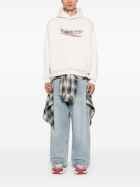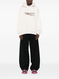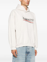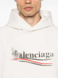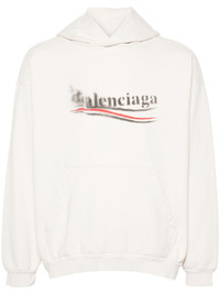 Political Stencil hoodie Balenciaga showcases its tongue-in-cheek humour with this white hoodie. Made from cotton to a relaxed silhouette, it is stamped with a blurred, stencil-like logo print to the front, drawing inspiration from political campaign branding. It is finished with ribbed cuffs and hem. Highlights - White - Cotton - Jersey texture - Logo print to the front - Classic hood - Drop shoulder - Long sleeves - Ribbed cuffs and hem - Front pouch pocket - Straight hem - When buying this unisex item, keep in mind that it is graded in standard men's sizing. Imported Composition Cotton 100% SIZE & FIT Model measurements Height 5 ft 10 in(1.77 m) Bust/Chest 32.28 in(82 cm) Hips 35.03 in(89 cm) Waist 25.19 in(64 cm) FittingInformation This unisex piece is designed for a loose fit whether you usually select women's or men's sizes The ribbed hem offers a close, comfortable fit Made from a midweight non-stretch fabric, this piece offers minimal elasticity when worn Washing instructions Machine Wash