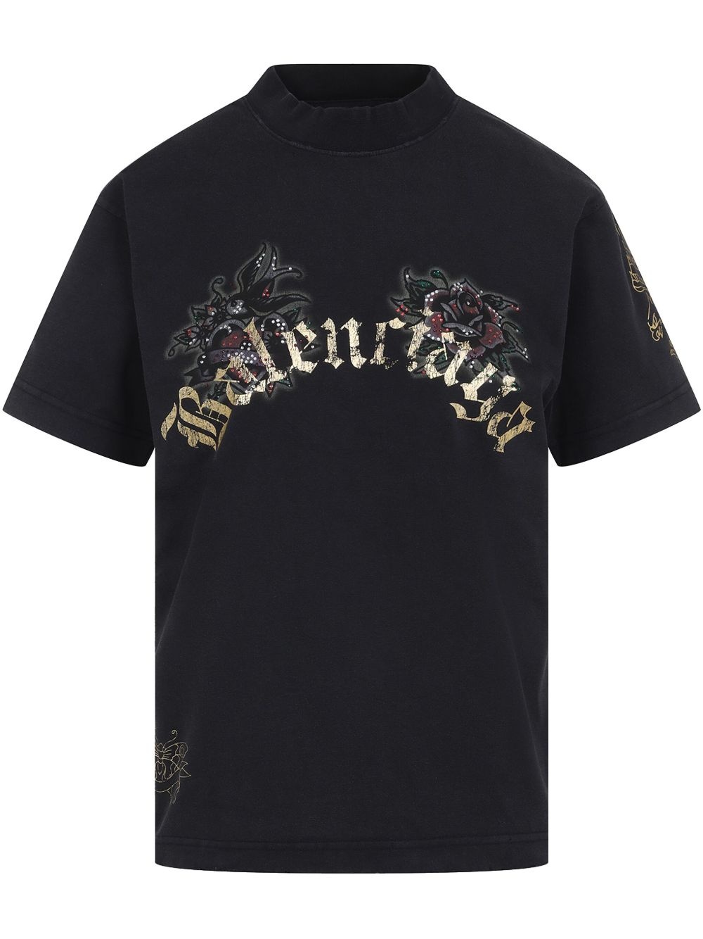 printed T-shirt Highlights - Black - Crew neck - Short sleeves - Straight hem Imported Composition Cotton 100% SIZE & FIT Measurement SLEEVE LENGTH 8.5 in(21.6 cm) LENGTH 25 in(63.5 cm) WAIST 40 in(101.6 cm) BUST 40 in(101.6 cm)