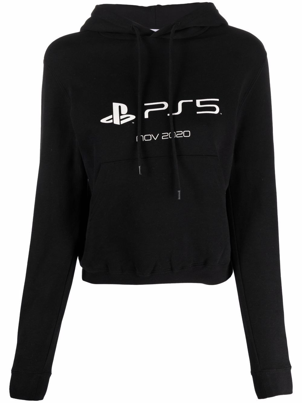 PS5 hoodie black cotton elasticated hem PS5 print logo print at the sleeve logo print to the rear drawstring hood long sleeves front patch pocket Imported Composition Cotton 100% SIZE & FIT Model measurements Height 5 ft 10 in(1.78 m) Bust/Chest 33.46 in(85 cm) Hips 36.22 in(92 cm) Waist 23.22 in(59 cm) FittingInformation This piece fits small – you might want to get one size up Cut for a slim fit Made with a mid-weight fabric
