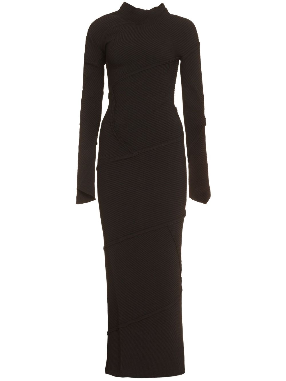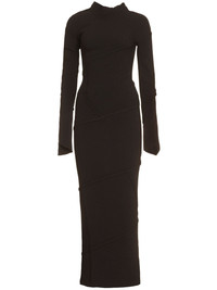 Spiral ribbed-knit maxi dress Knitted in Italy using a chunky ribbed stitch, this dress from Balenciaga spirals around the silhouette with abstract raised seams. It's framed by an asymmetric neck and falls to a maxi-length hem. Highlights - Black - Fsc viscose - Ribbed knit - Inside-out effect seams - Asymmetric neck - Long sleeves - Long length - Asymmetric hem Made in Italy Composition Viscose 85%, Polyester 15% SIZE & FIT Measurement HIPS 26.77 in(68 cm) LENGTH 49.6 in(126 cm) WAIST 26.77 in(68 cm) BUST 27.55 in(70 cm) FittingInformation Designed for a close fit throughout This piece fits true to size – take your usual size Washing instructions Dry Clean Only