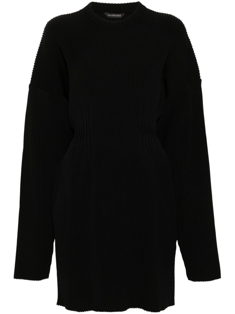 Hourglass mini dress Highlights - Black - Ribbed knit - Crew neck - Drop shoulder - Long sleeves - Fitted waistline - Unlined - Straight hem - Thigh-length Made in Italy Composition Viscose 41%, Polyamide 40%, Polyester 19% SIZE & FIT Model measurements Height 5 ft 10 in(1.78 m) Bust/Chest 32.67 in(83 cm) Hips 35.43 in(90 cm) Waist 23.22 in(59 cm) FittingInformation Designed for a slim fit that sits just away from the body offering a close yet comfortable fit Made with a heavyweight knit, this piece offers some stretch