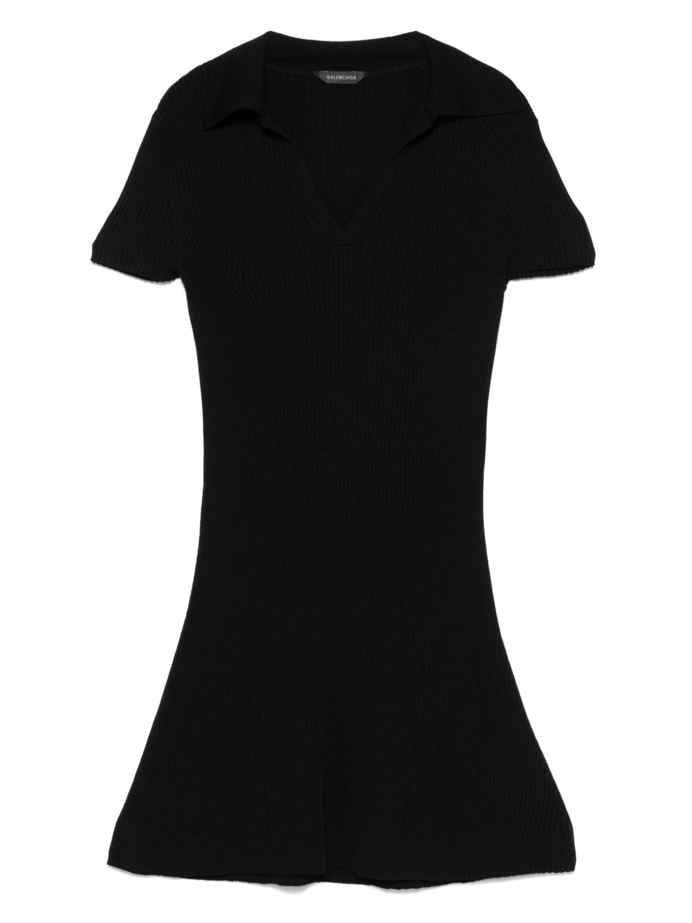 ribbed mini dress Highlights - Black - Spread collar - V-neck - Short sleeves - Flared hem Made in Italy Composition Wool 90%, Polyamide 8%, Elastane 2% SIZE & FIT Model measurements Height 5 ft 11 in(1.8 m) Bust/Chest 32.67 in(83 cm) Hips 36.22 in(92 cm) Waist 24.4 in(62 cm) FittingInformation Designed for a close fit throughout Slightly short in length; consider your own measurements Made with a lightweight knit, this piece offers some stretch