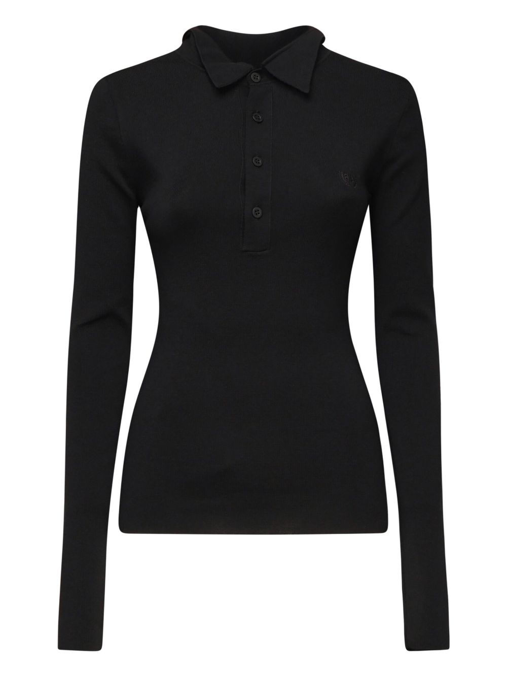 ribbed polo shirt Highlights - Black - Ribbed texture - Long sleeves - Polo collar - Button fastening - Embroidered logo Imported Composition Wool 100% Washing instructions Read Manufacturer Guidelines