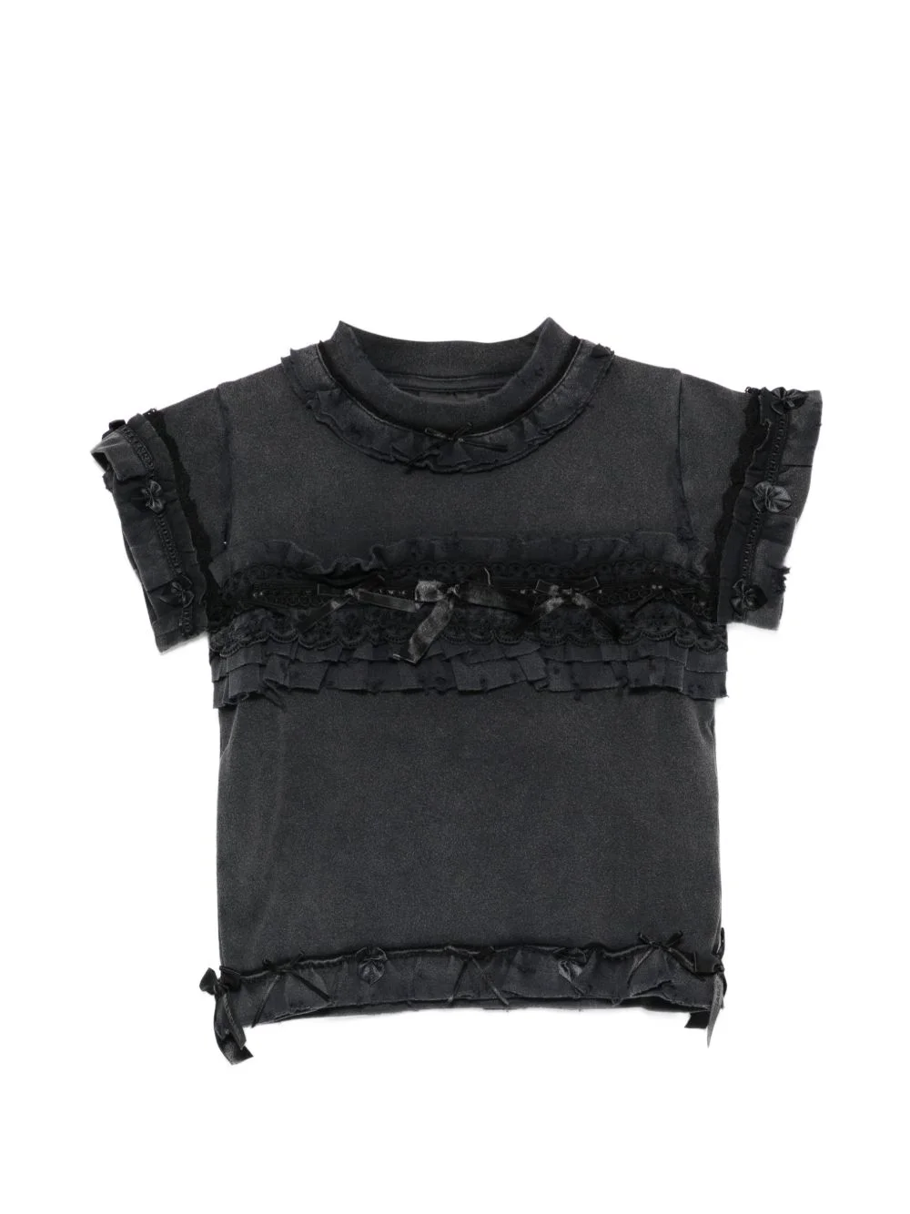 ruffled cotton top Highlights - Black - Washed effect - Lace and bow details - Ruffle trim - Short sleeves - Crew neck Imported Composition Cotton 100% Washing instructions Hand Wash