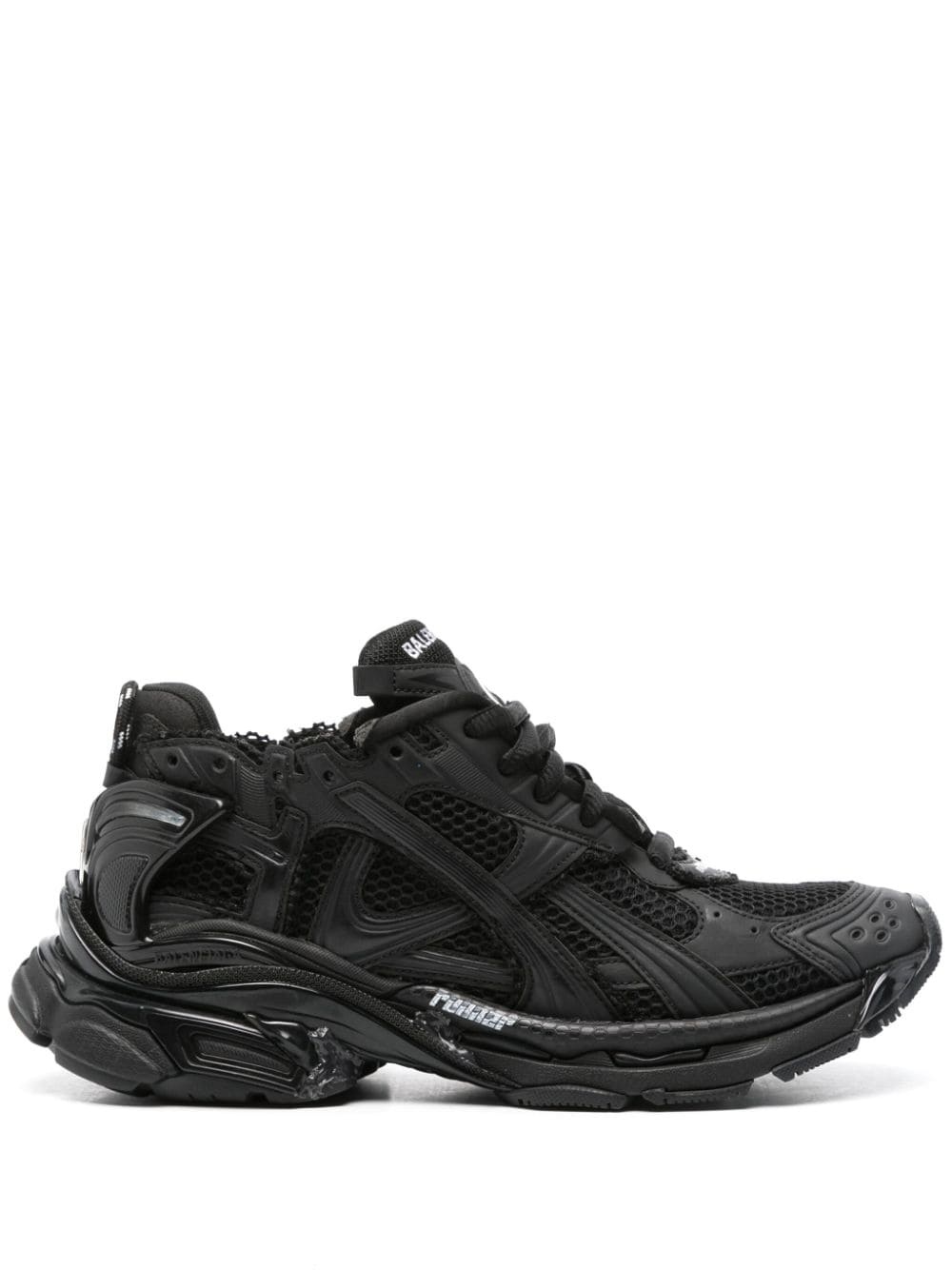 Runner sneakers Highlights - Black - Mesh design - Layered design - Matte finish - Distressed effect - Logo print to the side - Logo-embroidered tongue - Round toe - Front lace-up fastening - Pull-tab at the heel - Branded insole - Chunky rubber sole Imported Composition Outer: Rubber 100%, Fabric 100% Sole: Rubber 100% Lining: Fabric 100% SIZE & FIT Measurement HEEL 2.16 in(5.5 cm) Sole height 1.18 in(3 cm)