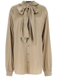 satin hooded shirt Highlights - Beige - Satin weave - Classic hood - Pussy-bow collar - Long sleeves - Buttoned cuffs - Front button fastening - Curved hem Made in Italy Composition Satin 100%