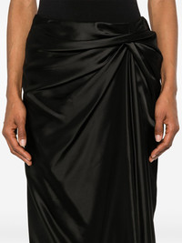 satin midi dress Highlights - Black - Concealed rear hook and zip fastening - Pleat detailing - Raw-cut edge - Asymmetric hem Made in Italy Composition Cupro 100% SIZE & FIT Model measurements Height 5 ft 11 in(1.8 m) Bust/Chest 32.67 in(83 cm) Hips 35.82 in(91 cm) Waist 25.98 in(66 cm) FittingInformation Designed with an asymmetric hem, this skirt is intended to be worn just below the waist Made from a midweight non-stretch fabric