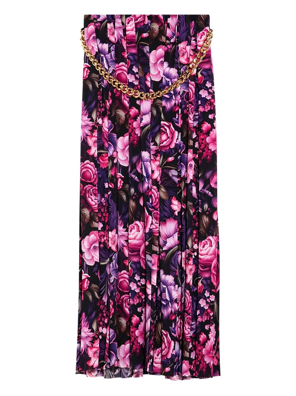 Chain-embellished pleated floral-print crepe maxi skirt