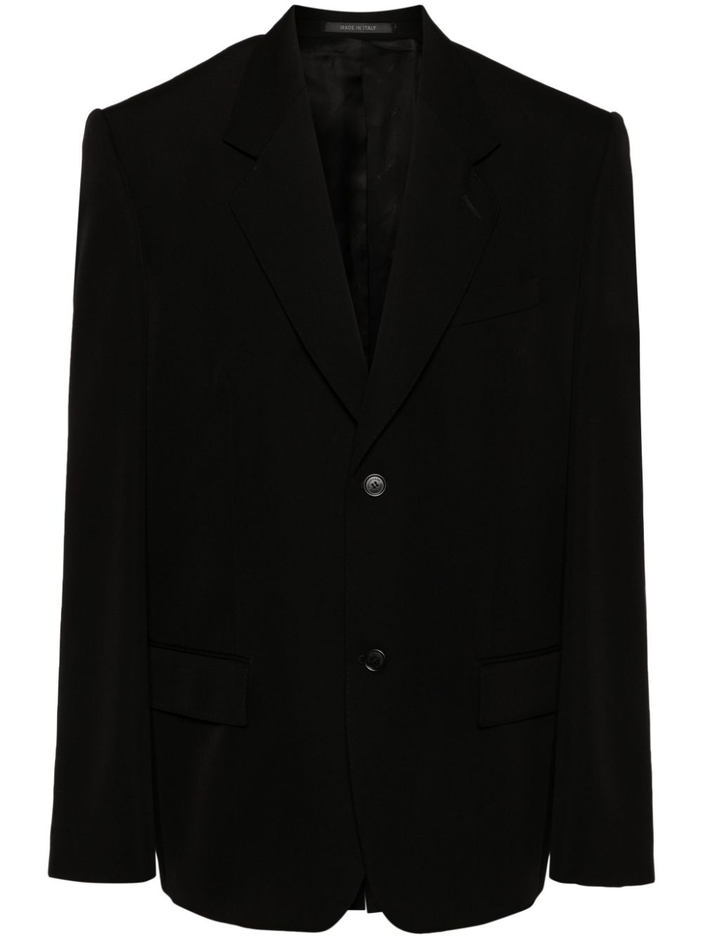 twill blazer Balenciaga's selection for AW23 favours timeless pieces. A true example of that approach, this wool blazer is cut to a classic single-breasted silhouette and finished with notched lapels. Highlights - Black - Wool - Twill weave - Notched lapels - Shoulder pads - Long sleeves - Buttoned cuffs - Chest welt pocket - Dart detailing - Two side flap pockets - Logo-print lining - Multiple internal slip pockets - Straight hem - Front button fastening - When buying this unisex item, keep in mind that it is graded in standard men's sizing. Made in Italy Composition Lining: Cotton 100%, Cupro 100% Outer: Wool 100% SIZE & FIT Model measurements Height 5 ft 10 in(1.77 m) Bust/Chest 33.85 in(86 cm) Hips 37 in(94 cm) Waist 26.37 in(67 cm) FittingInformation The internal shoulder pads offer a structured shape Made from a midweight non-stretch fabric Washing instructions Dry Clean Only