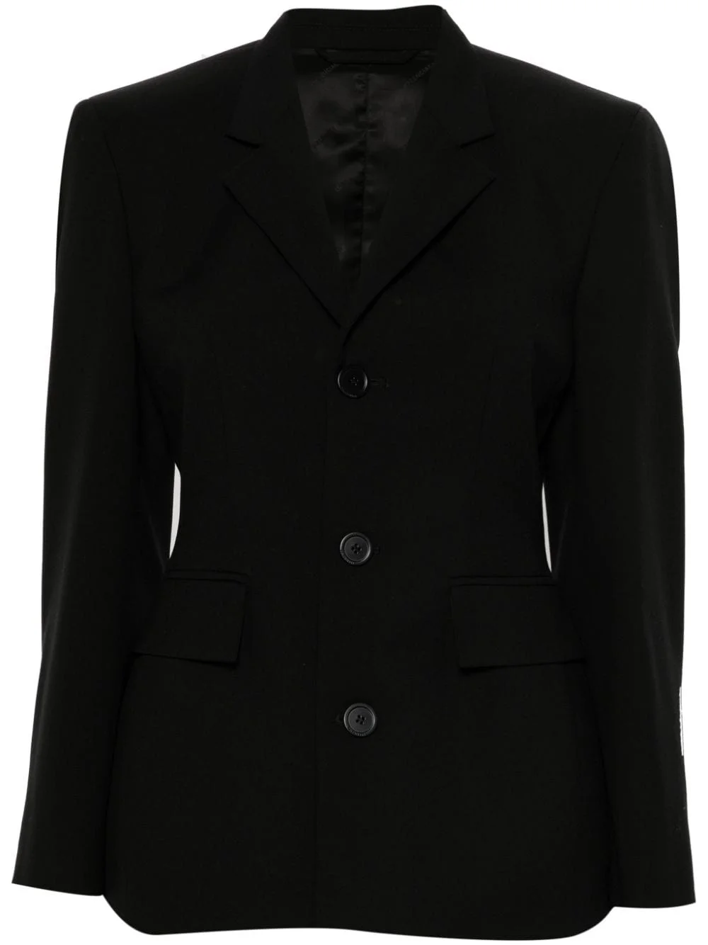 single-breasted wool blazer Highlights - Black - Wool - Notched lapels - Long sleeves - Two side flap pockets - Logo-jacquard lining - Internal slip pockets - Straight hem - Front button fastening Made in Italy Composition Lining: Cotton 100%, Cupro 100%, Polylactic Acid (PLA) 100%, Silk 60% Outer: Wool 100% SIZE & FIT Model measurements Height 5 ft 11 in(1.8 m) Bust/Chest 31.49 in(80 cm) Hips 35.82 in(91 cm) Waist 24.8 in(63 cm) FittingInformation Designed for a slim fit that sits just away from the body offering a close yet comfortable fit The internal shoulder pads offer a structured shape Made from a midweight non-stretch fabric This piece fits true to size – take your usual size