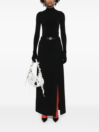 slit tailored maxi skirt Highlights - Black - High-waisted - Belt loops - Concealed side zip fastening - Tailored cut - Floor-length - Side slit Made in Italy Composition Outer: Wool 100% Lining: Cotton 100%, Cupro 100% SIZE & FIT Model measurements Height 5 ft 11 in(1.8 m) Bust/Chest 31.49 in(80 cm) Hips 35.82 in(91 cm) Waist 24.8 in(63 cm) FittingInformation This maxi-length skirt is intended to be worn just below the waist Made from a midweight non-stretch fabric This piece fits true to size – take your usual size