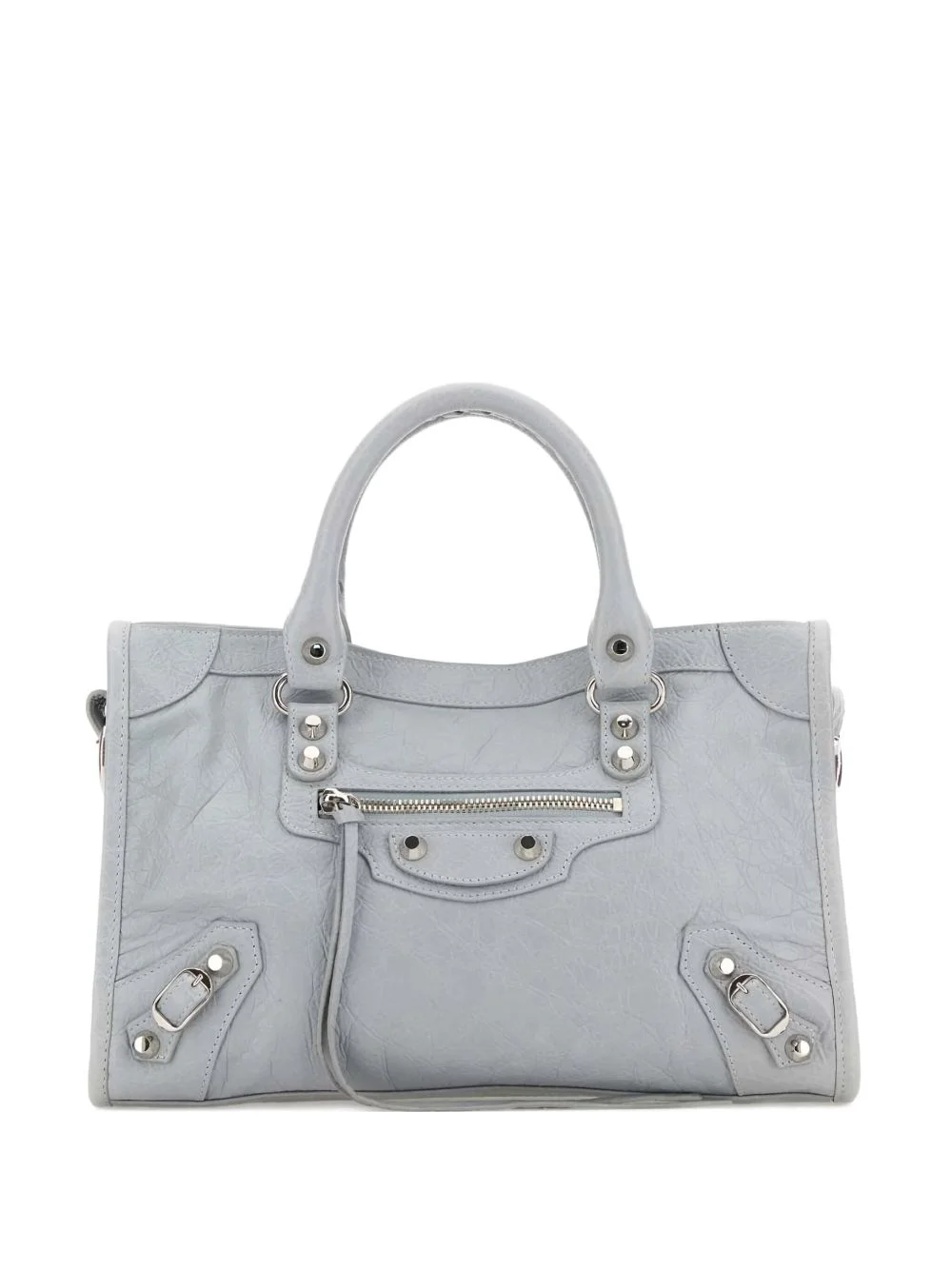 small Le City leather tote bag Highlights - Light grey - Arena storico lamb leather - Silver metal finish - Top handles - Detachable shoulder strap - Studded details Made in Italy Composition Outer: Lambskin 100% Lining: Cotton 100% SIZE & FIT Measurement DEPTH 4.13 in(10.5 cm) HANDLE 3.93 in(10 cm) HEIGHT 7.87 in(20 cm) WIDTH 12 in(30.5 cm)
