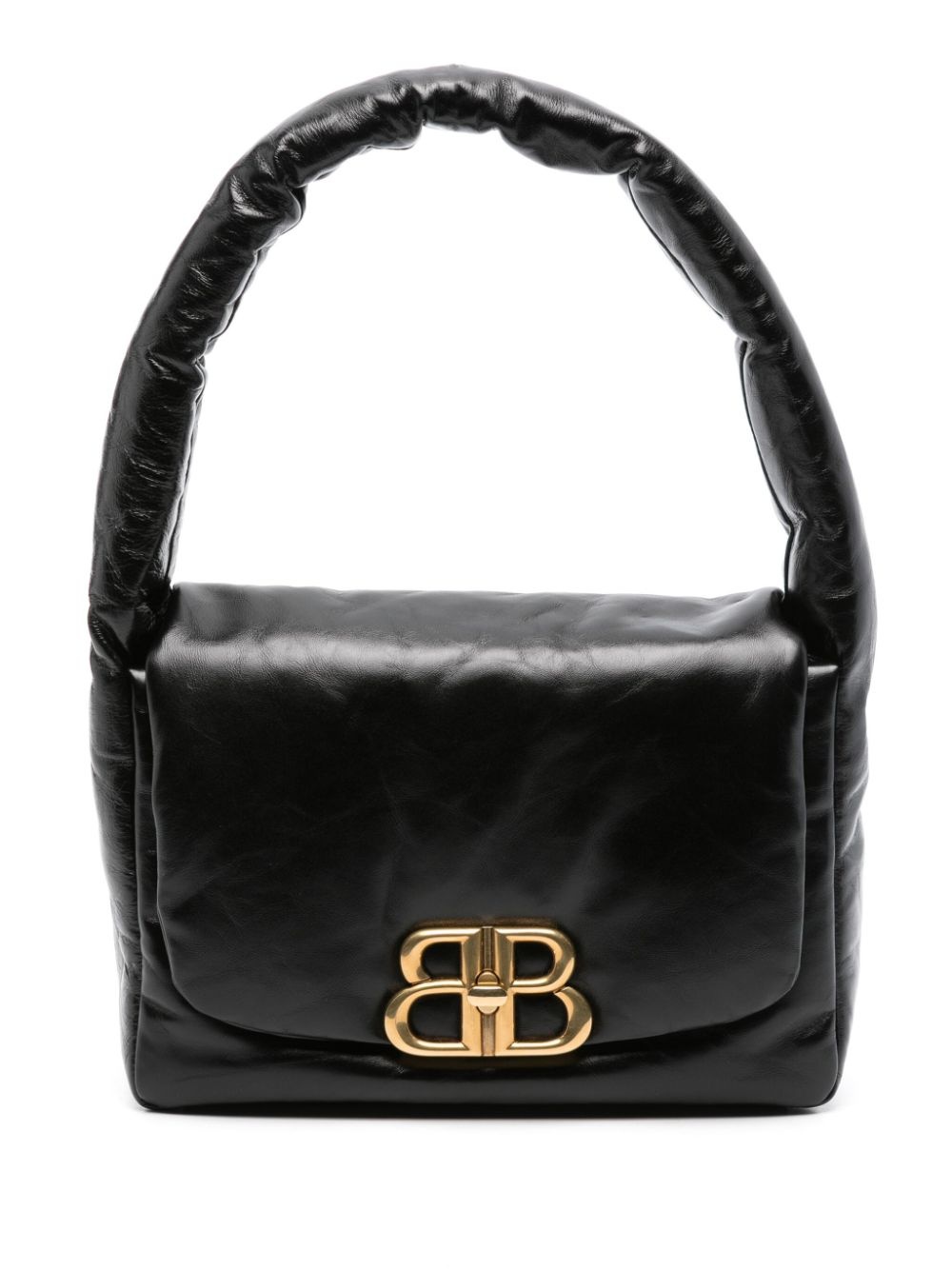 small Monaco shoulder bag Balenciaga's classic Monaco shoulder bag is crafted from buttery soft calf leather and is anchored with the iconic B logo plaque. Highlights - Black - Calf leather - Smooth grain - Cracked effect - Signature b logo plaque - Foldover top with twist-lock closure - Single padded flat top handle - Main compartment - Debossed internal logo - Internal zip-fastening pocket - Leather lining - Gold-tone hardware Made in Italy Composition Outer: CALFSKIN 100% SIZE & FIT Model measurements Height 5 ft 10 in(1.78 m) Bust/Chest 31.49 in(80 cm) Hips 37 in(94 cm) Waist 23.62 in(60 cm) Measurement DEPTH 3.93 in(10 cm) HEIGHT 5.9 in(15 cm) WIDTH 9.84 in(25 cm) HANDLE 7.87 in(20 cm)