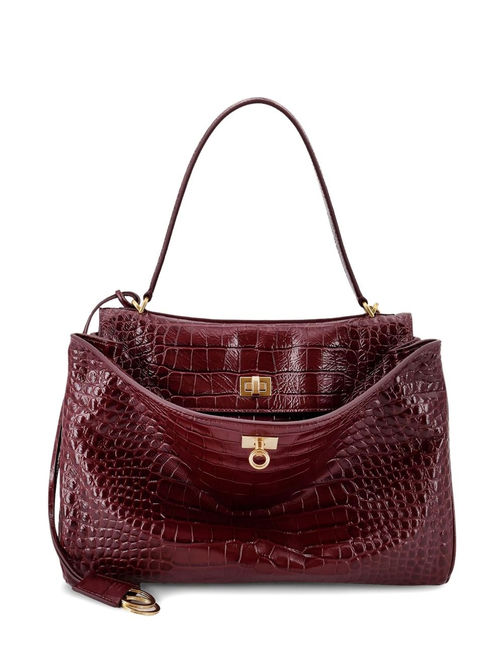 small Rodeo shoulder bag Highlights - Burgundy red - Crocodile embossing - Top handle - Detachable shoulder strap - Gold-tone hardware - Clasp closure - This piece comes complete with a protective dust bag. Imported Composition Lining: Leather 100%
