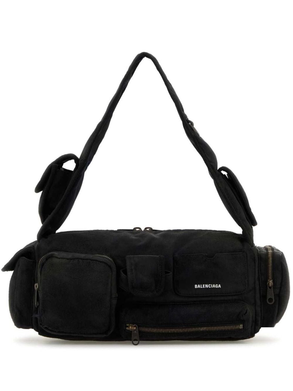small Superbusy bag Highlights - Black - Cotton - Washed - Top zip fastening - Adjustable shoulder strap - Logo patch to the front - Front zip-fastening pocket - Side flap pocket - Side zip-fastening pocket - Main compartment Made in Italy Composition Outer: Polyamide 100%, Fabric 100% Lining: Fabric 100% SIZE & FIT Measurement DEPTH 5.51 in(14 cm) HANDLE 10.23 in(26 cm) HEIGHT 5.11 in(13 cm) WIDTH 11.02 in(28 cm)