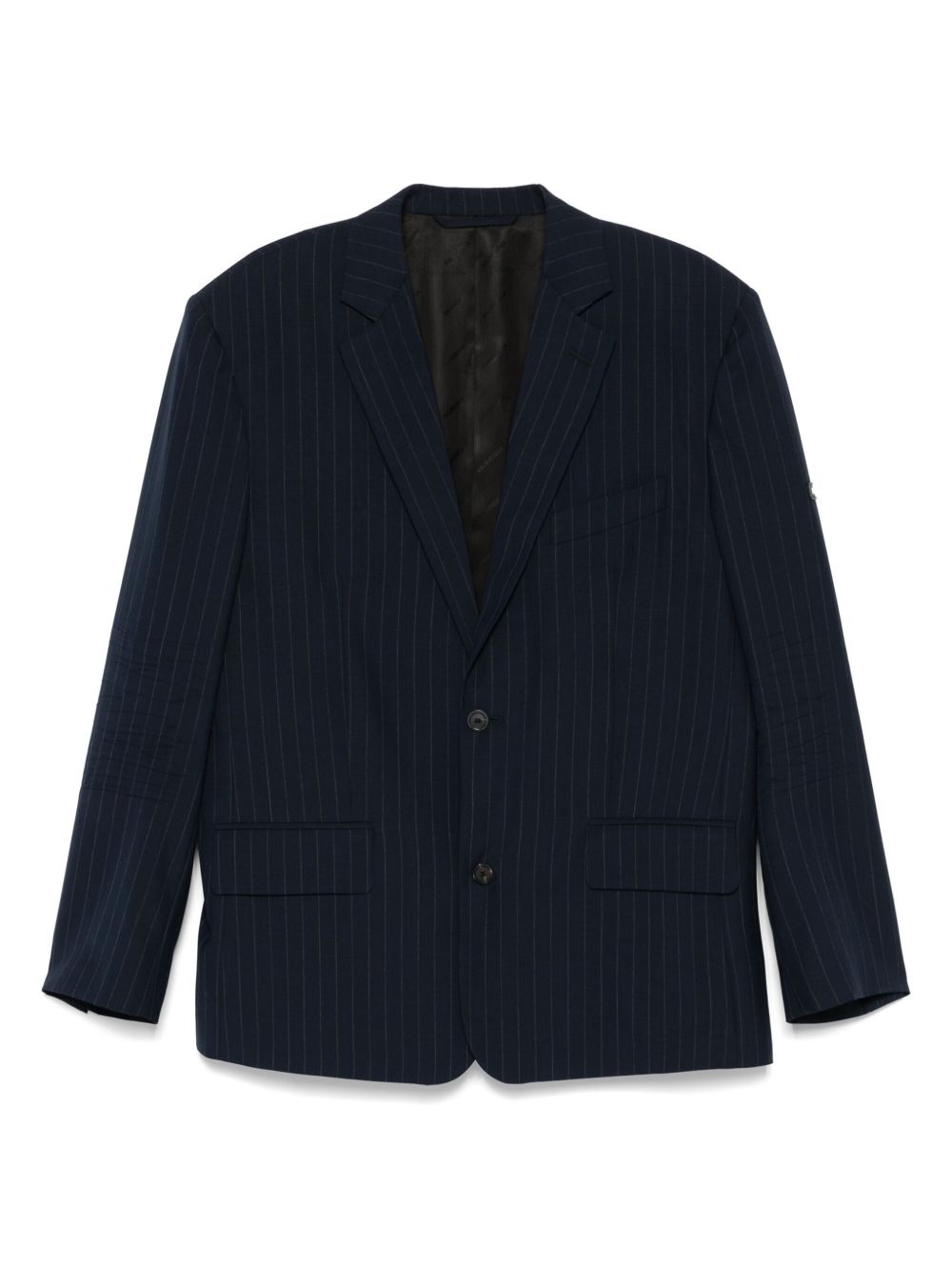 striped blazer Highlights - Navy blue - Front button fastening - Chest welt pocket - Two front flap pockets - Buttoned cuffs Made in Italy Composition Outer: Wool 100% Lining: Cupro 100% SIZE & FIT Model measurements Height 5 ft 10 in(1.78 m) Bust/Chest 31.49 in(80 cm) Hips 37 in(94 cm) Waist 23.62 in(60 cm) FittingInformation Designed for an oversized fit, offering additional room throughout The internal shoulder pads offer a structured shape Made from a midweight non-stretch fabric