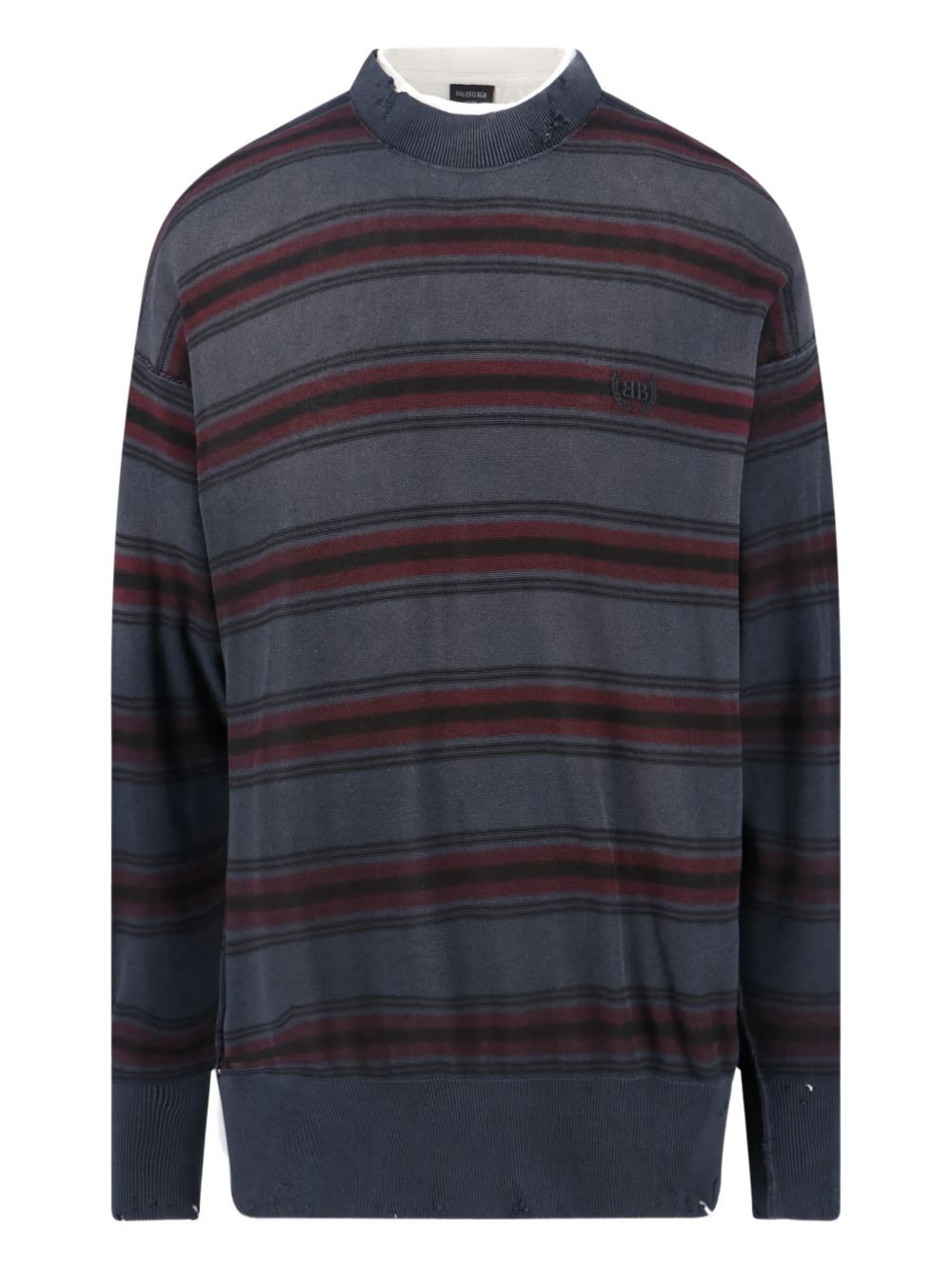 striped distressed sweater Highlights - Dark-blue - Horizontal stripes - Embroidered logo - Distressed detailing - Round neck - Long sleeves Made in Italy Composition Cotton 78%, Silk 22%