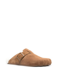 Sunday slippers Highlights - Ochre brown - Calf suede - Side buckle fastening - Slip-on style - Anatomical toe - Branded footbed - Shearling lining - Flat rubber sole - This piece comes complete with a protective dust bag. Made in Italy Composition Outer: Calf Suede 100% Sole: Rubber 100% Lining: Fabric 100% SIZE & FIT Measurement HEEL 1.18 in(3 cm)