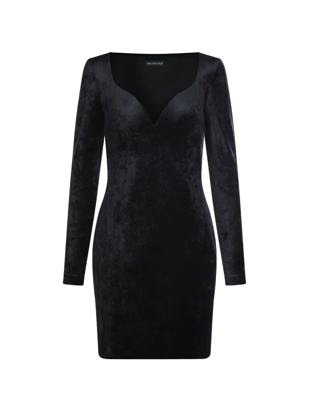 sweetheart-neck dress Highlights - Black - Long sleeves - Sweetheart neck - Concealed zip fastening - Velvet finish - Straight hem Made in Italy Composition Viscose 78%, Polyamide 20%, Spandex/Elastane 2% Washing instructions Read Manufacturer Guidelines