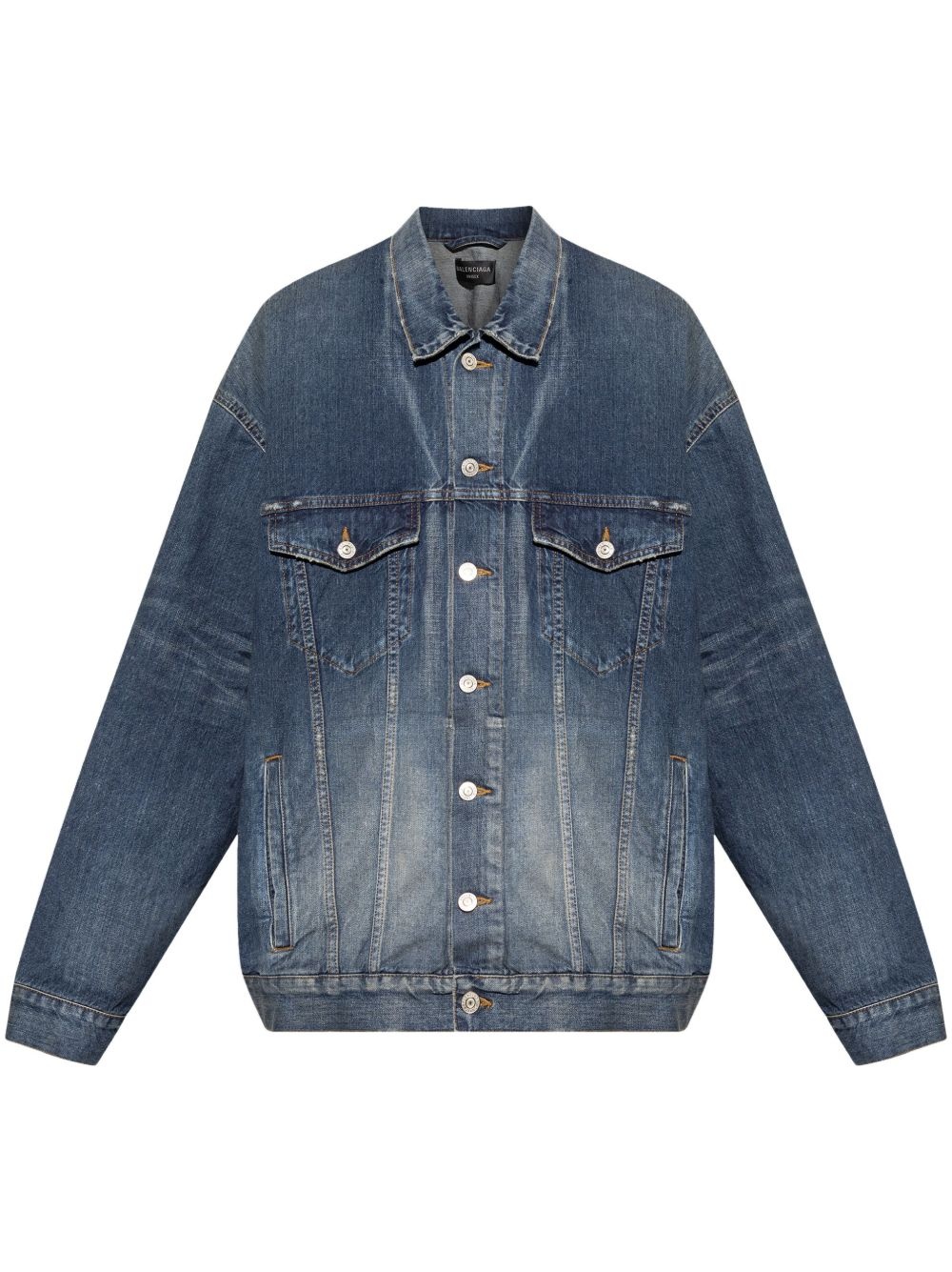 Tape Type-print denim jacket Highlights - Indigo blue - Front button fastening - Two chest flap pockets - Two side welt pockets - Buttoned cuffs - When buying this unisex item, keep in mind that it is graded in standard men's sizing. Imported Composition Cotton 100%