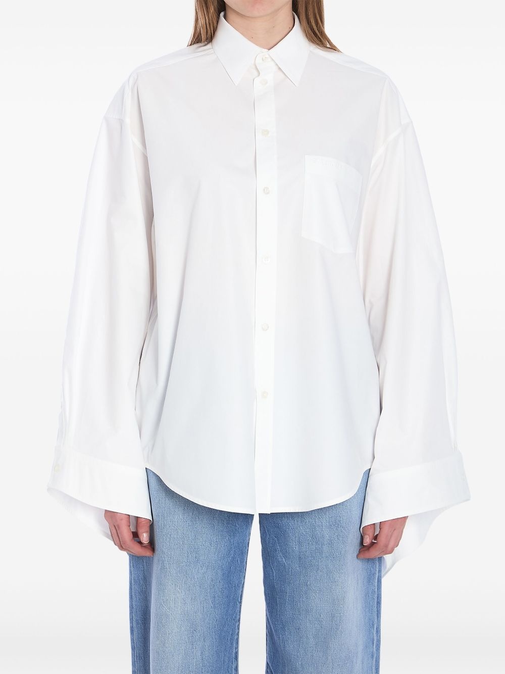 tied-cuff shirt Highlights - White - Front button fastening - Chest patch pocket - Classic collar - Long sleeves Made in Italy Composition Cotton 100%, Polyester 100% SIZE & FIT Measurement SLEEVE LENGTH 30.31 in(77 cm) LENGTH 29.13 in(74 cm) WAIST 48.03 in(122 cm) BUST 48.03 in(122 cm) Shoulder Width 21.25 in(54 cm) FittingInformation Designed to be unstructured, offering a loose fit throughout Made from a midweight non-stretch fabric