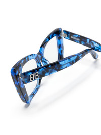 tortoiseshell cat-eye glasses Highlights - Royal blue/black - Acetate - Tortoiseshell effect - Cat-eye frame - Clear lenses - Logo plaque at the arm - Straight arms - Curved tips - All glasses from farfetch are sold as non-prescription frames. - These glasses come with a protective case. Made in Italy Composition Acetate 100% SIZE & FIT Measurement Arm Length 5.7 in(14.5 cm) Bridge Width 0.62 in(1.6 cm) Lens Diameter 2.04 in(5.2 cm) Total Width 5.51 in(14 cm)