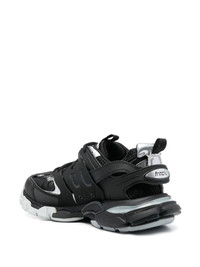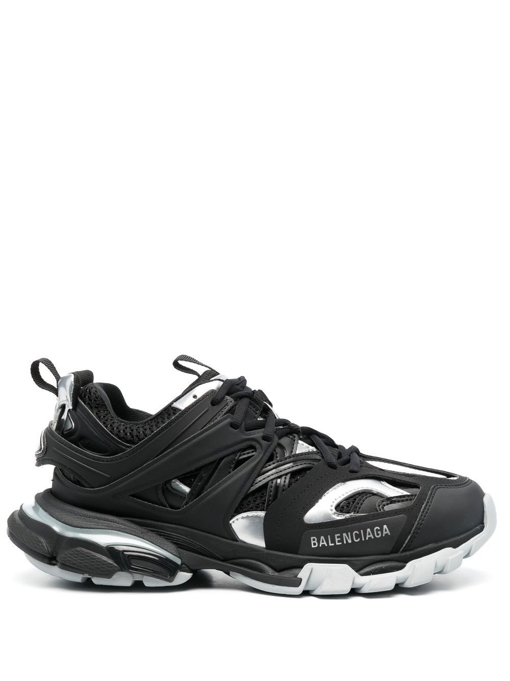 Track low-top sneakers First released as part of Balenciaga's AW18 collection, the Track sneakers demonstrate the brand's penchant for 90s sports-inspired silhouettes. Produced in a layered style, mesh and nylon construction, this iteration showcases a full black colourway. Highlights - Black - Faux leather - Logo print to the side - Round toe - Front lace-up fastening - Double pull-tab at the opening - Branded insole - Rubber sole Imported Composition Other fibres 100% SIZE & FIT Measurement HEEL 1.57 in(4 cm) Sole height 0.78 in(2 cm)