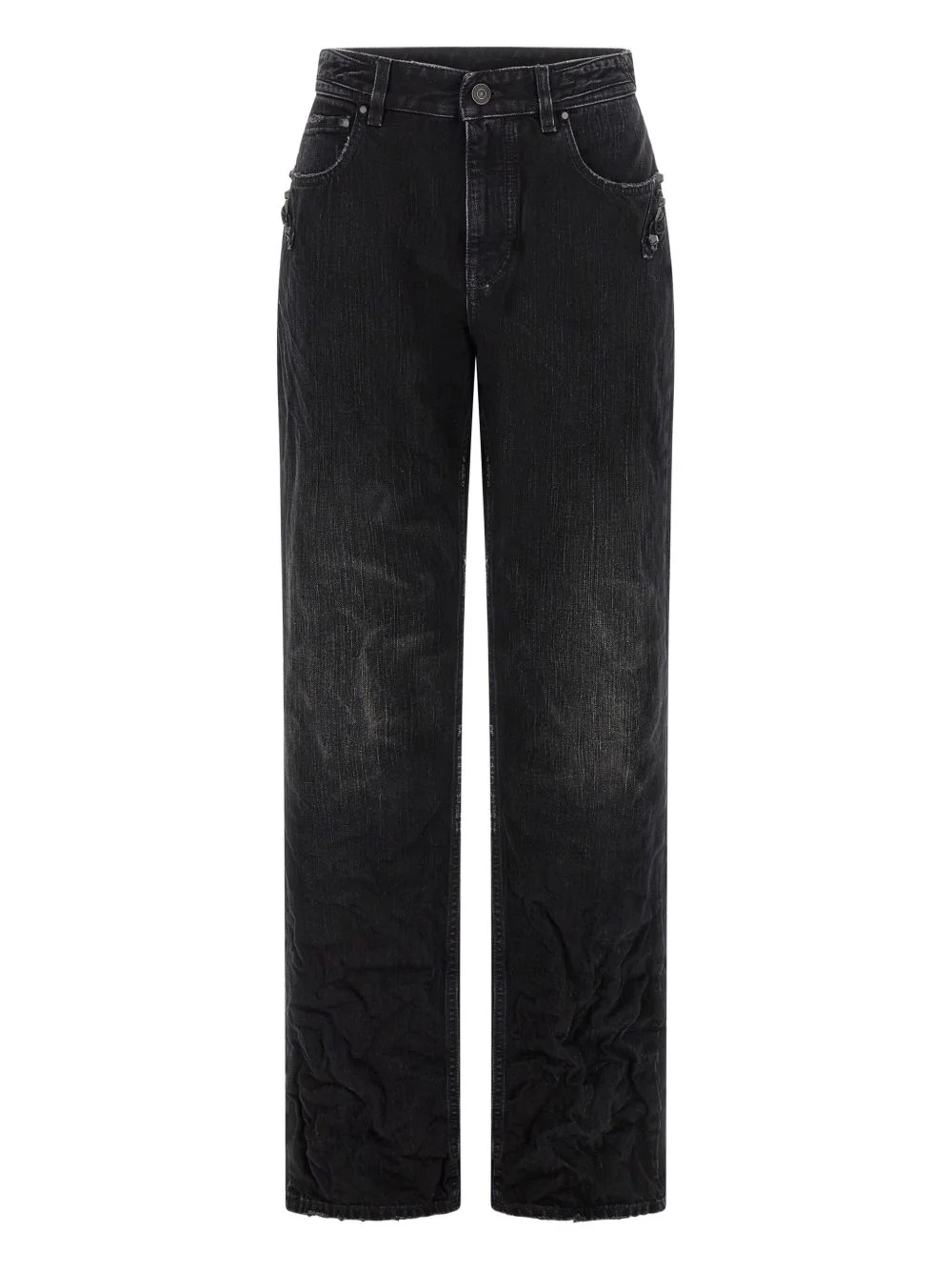 used-effect city jeans Highlights - Black - Stonewashed effect - Five pockets - Front zip and button closure - Back logo tag - Iconic city details on the front and back side pockets Made in Italy Composition Cotton 100% Washing instructions Read Manufacturer Guidelines