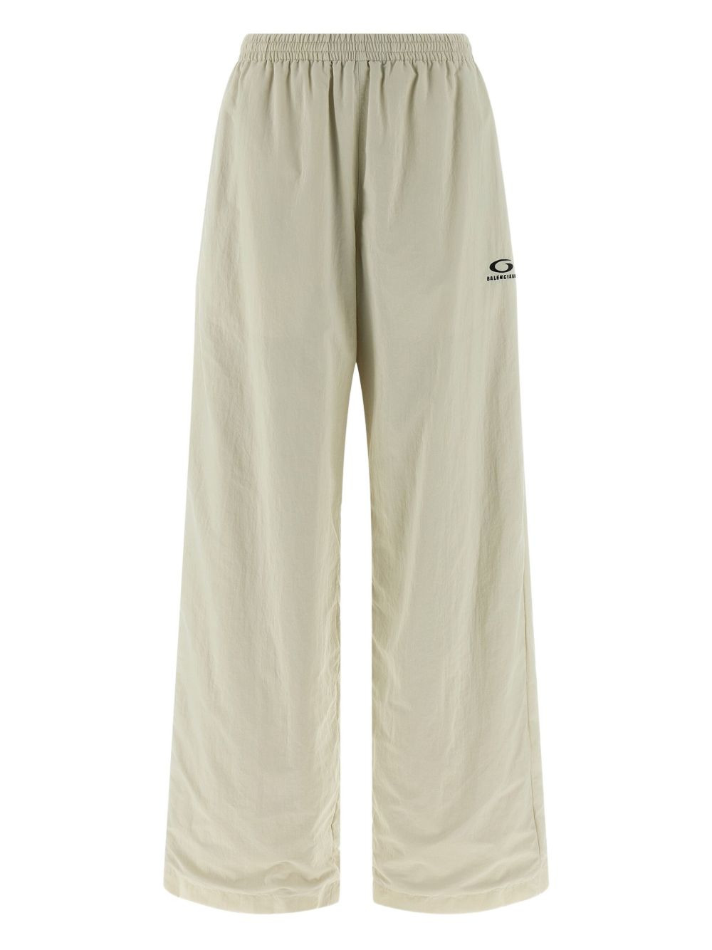 wrinkled-effect logo-embroidery trousers Highlights - Beige - Wrinkled effect - Logo embroidery - Elasticated drawstring waist - Side pockets Made in Italy Composition Outer: Nylon 100% Lining: Mesh 100% Washing instructions Read Manufacturer Guidelines