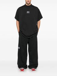 x Under Armour® wide-leg sweatpants Highlights - Black - Elasticated waistband with internal drawstring - Two side welt pockets - Embroidered logo at the leg Imported Composition Cotton 100%, Polyester 100% SIZE & FIT Model measurements Height 6 ft 2 in(1.87 m) Bust/Chest 37.79 in(96 cm) Hips 37.79 in(96 cm) Waist 30.31 in(77 cm) Measurement FRONT RISE 17.99 in(45.7 cm) INSIDE LEG 33.5 in(85.1 cm) BACK RISE 19.01 in(48.3 cm) HIPS 52 in(132.1 cm) Hem Width 27 in(68.6 cm) WAIST 32 in(81.3 cm) FittingInformation Designed with a wide leg, offering a loose and roomy fit Adjust this piece’s waistband to your preference using the drawstring Made from a midweight non-stretch fabric, this piece offers minimal elasticity when worn