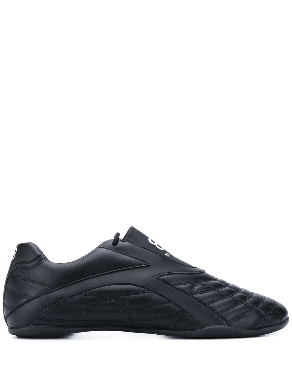 Zen low-top sneakers Keep things relaxed, including your shoe collection. Zen sneakers from Balenciaga have a softly rounded silhouette with a quilted finish. So take a deep breath in and put your best foot forward. Highlights - Black - Leather - Round toe - Logo print to the front - Slip-on style - Branded insole - Branded heel counter - Flat rubber sole - Stitching details Imported Composition Sole: Rubber 100% Outer: Polyurethane 100% Lining: Leather 100% SIZE & FIT Measurement HEEL 0.39 in(1 cm) Sole height 0.39 in(1 cm)