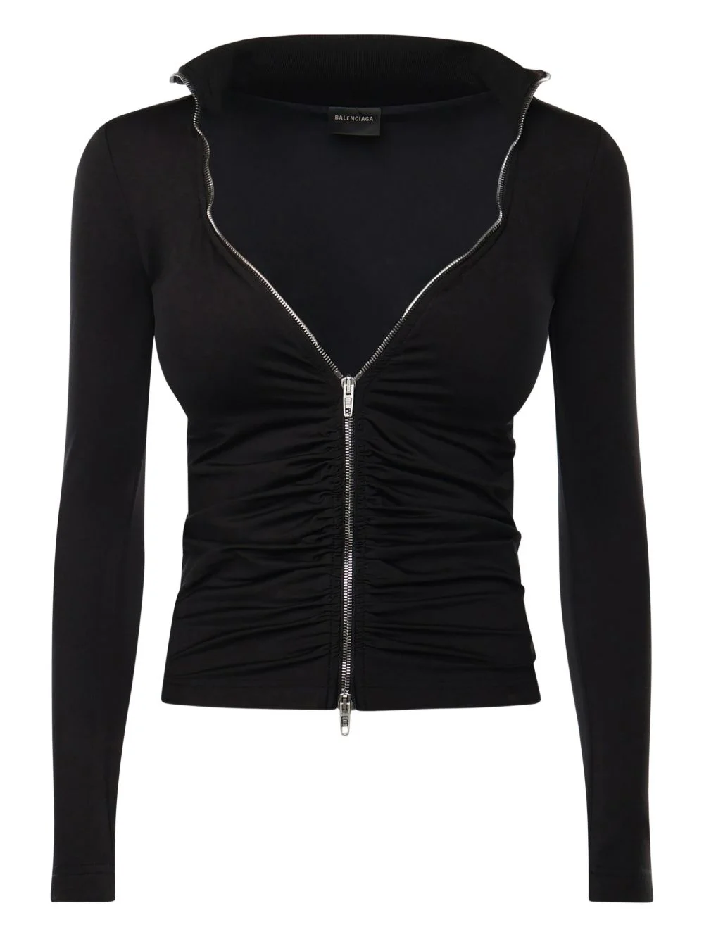 zip jacket Highlights - Black - Zip fastening - Long sleeves - Gathered detail Imported Composition Polyester 84%, Fabric 16% Washing instructions Read Manufacturer Guidelines