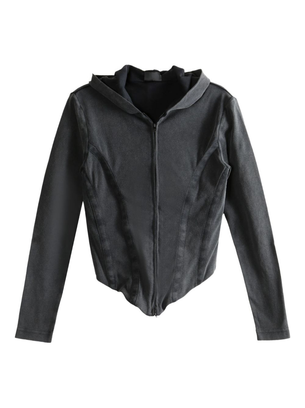 zip top hoodie Highlights - Washed black - Zip fastening - Hood - Long sleeves - Pointed hem Made in Italy Composition Cotton 100% Washing instructions Read Manufacturer Guidelines