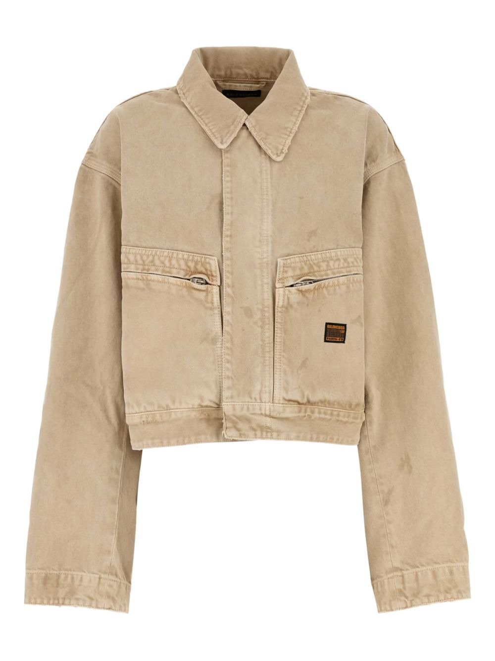 zipped-pocket long-sleeves denim jacket Highlights - Beige - Cotton - Zipped pockets - Concealed closure - Long sleeves Imported Composition Cotton 100% Washing instructions Read Manufacturer Guidelines