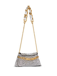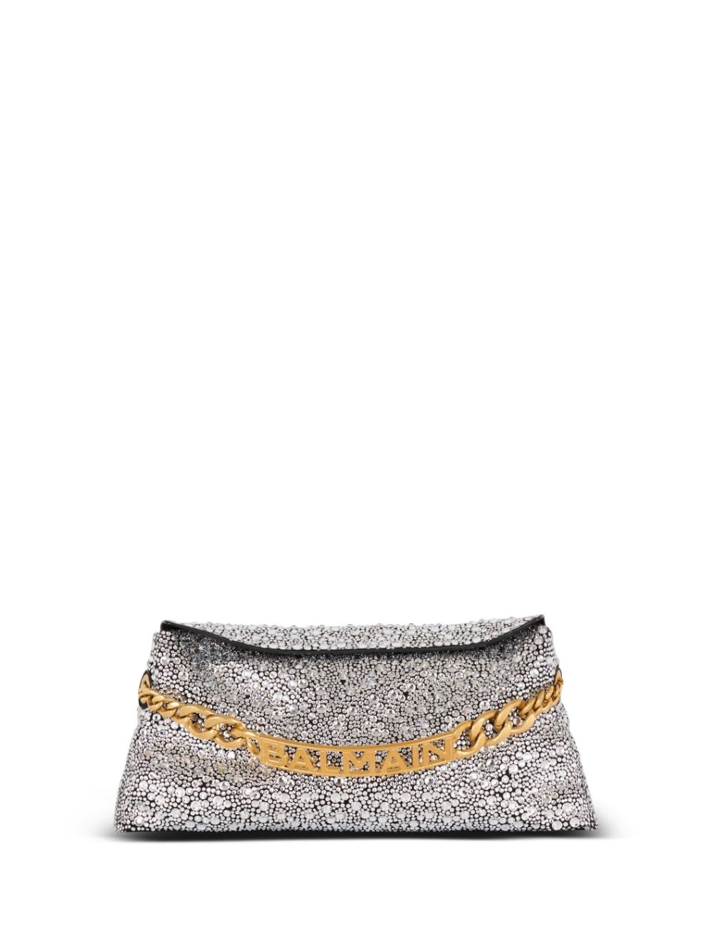 1945 rhinestone-embellished clutch bag Highlights - Grey - Suede - Rhinestone embellishment - Chain-link shoulder strap - Embossed logo to the front - Main compartment Made in Italy Composition Suede 100%