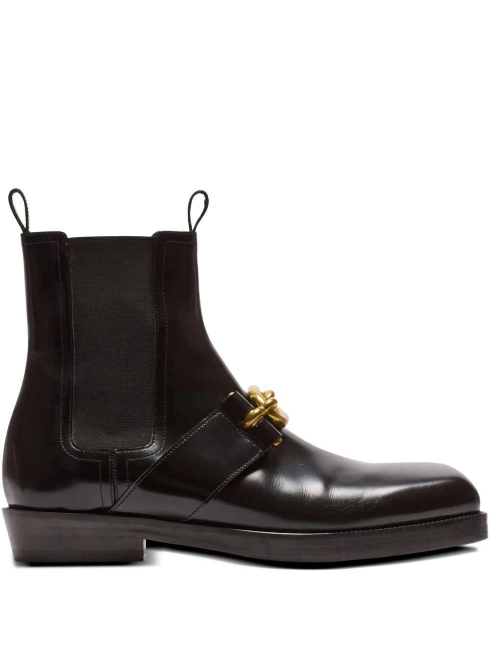 35mm chain-embellished chelsea boots Highlights - Black - Glazed leather - Chain detail - Elastic side panels - Square toe - Low block heel Made in Italy Composition Outer: CALFSKIN 100% Lining: Calf Leather 100% Sole: Calf Leather 100% SIZE & FIT Measurement HEEL 1.37 in(3.5 cm) Washing instructions Specialist Cleaning